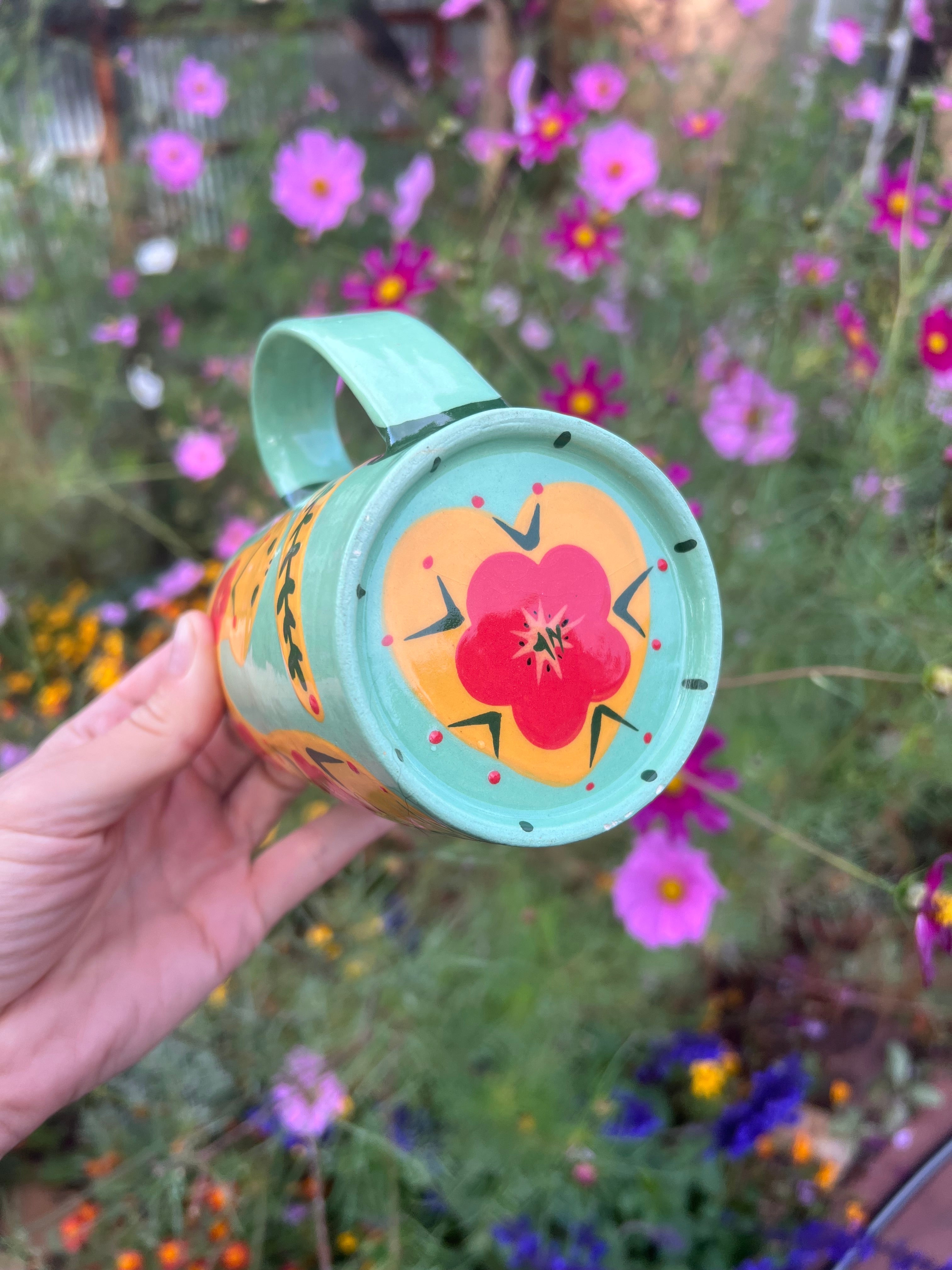 Perfect for morning coffee, afternoon tea, or simply brightening your kitchen shelf, this mug is equal parts art and function — made to be cherished every day.